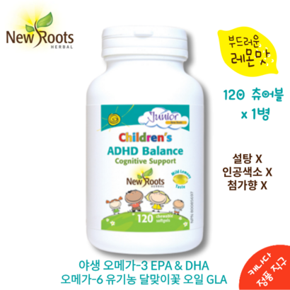 #어린이,#청소년,#수험생,#ADHD,#과잉행동,#주의력,#기억력,#집중력,#결핍,#영양제,#레몬맛,#츄어블,#120,#소프트젤,#뉴루츠,#캐나다,#직구,#New,#Roots,#Chidren,#ADHD,#Baance,#120정,#1개,#오메가369,#리뷰후기